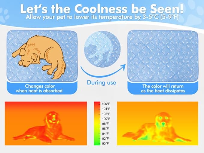 - 🐶【مرئيات التبريد التفاعلية】ستندهش من السطح المستجيب لدرجة الحرارة! يتغير لون بساط التبريد المتطور للكلاب ذو اللون الحراري من اللون الأزرق الداكن إلى اللون الفاتح حيث يمتص الحرارة ثم يعود إلى اللون الأزرق بمجرد تبريده، مما يخلق عرضًا مرئيًا جذابًا لعملية التبريد في العمل. هذه الميزة المذهلة لا تبدو رائعة فحسب، بل تتيح لك مشاهدة عملية امتصاص الحرارة والتبريد في العمل. احصل على واحدة اليوم وامنح صديقك ذو الفراء تجربة استرخاء رائعة ومريحة!