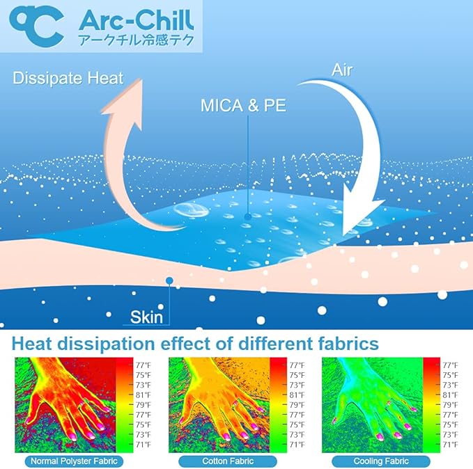 آرك-تشيل -- قماش خاص يحتوي على ألياف بوليستر موصلة وجزيئات من اليشم. تعمل جزيئات اليشم على خلق تأثير تبريد من خلال امتصاص الحرارة، بينما يساعد البوليستر على تبخر الرطوبة بشكل أسرع. يمكن أن تقلل هذه التقنية من درجة حرارة الجلد بمقدار 2 إلى 4 ℃.