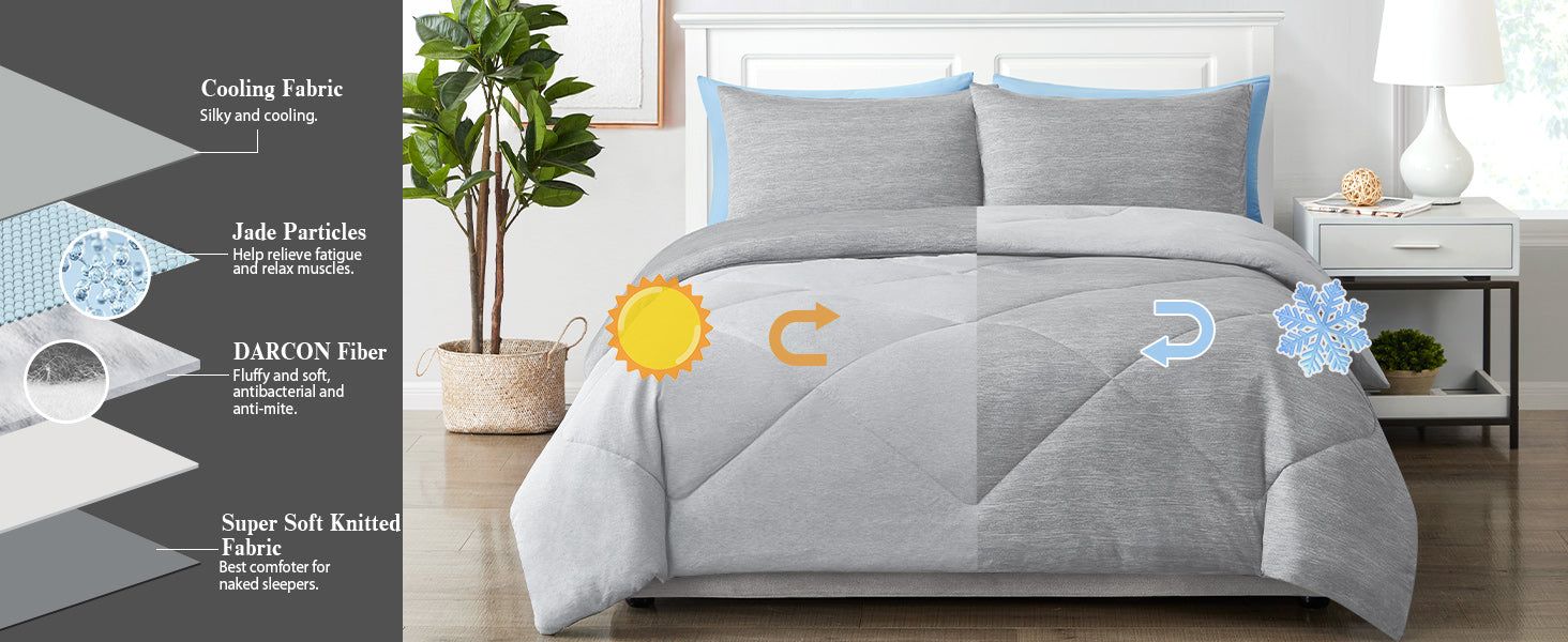ما تحصل عليه:   لحاف التبريد الأزرق: Arc-Chill Cool Technology النسيج يمكن أن يمتص حرارة جسم الإنسان بسرعة ، عندما يلمس جسم الإنسان النسيج ، درجة حرارة سطح الجسم على الفور يسقط بنحو 2 إلى 5 درجات.