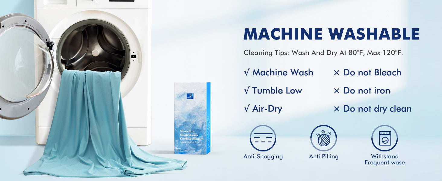 Maintenance is effortless—just toss it in the washing machine, tumble dry on low (below 86°F), or air dry. It stays soft, smooth, and cool after every wash.