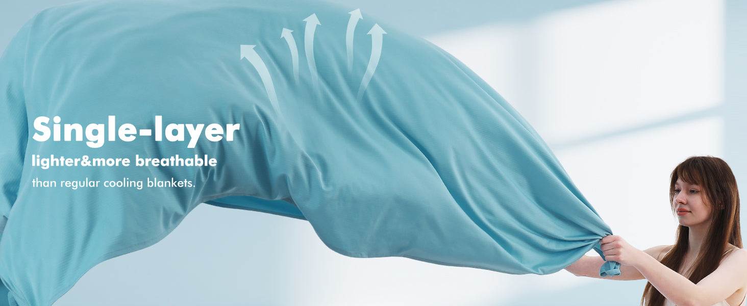 Designed with a seamless single-layer structure, this cooling blanket is ultra-light, soft, and highly breathable—thinner than traditional summer blankets without sacrificing cooling power. Perfect as an AC wrap, travel blanket, stroller cover, or office shawl, it’s your go-to cooling companion wherever you go.