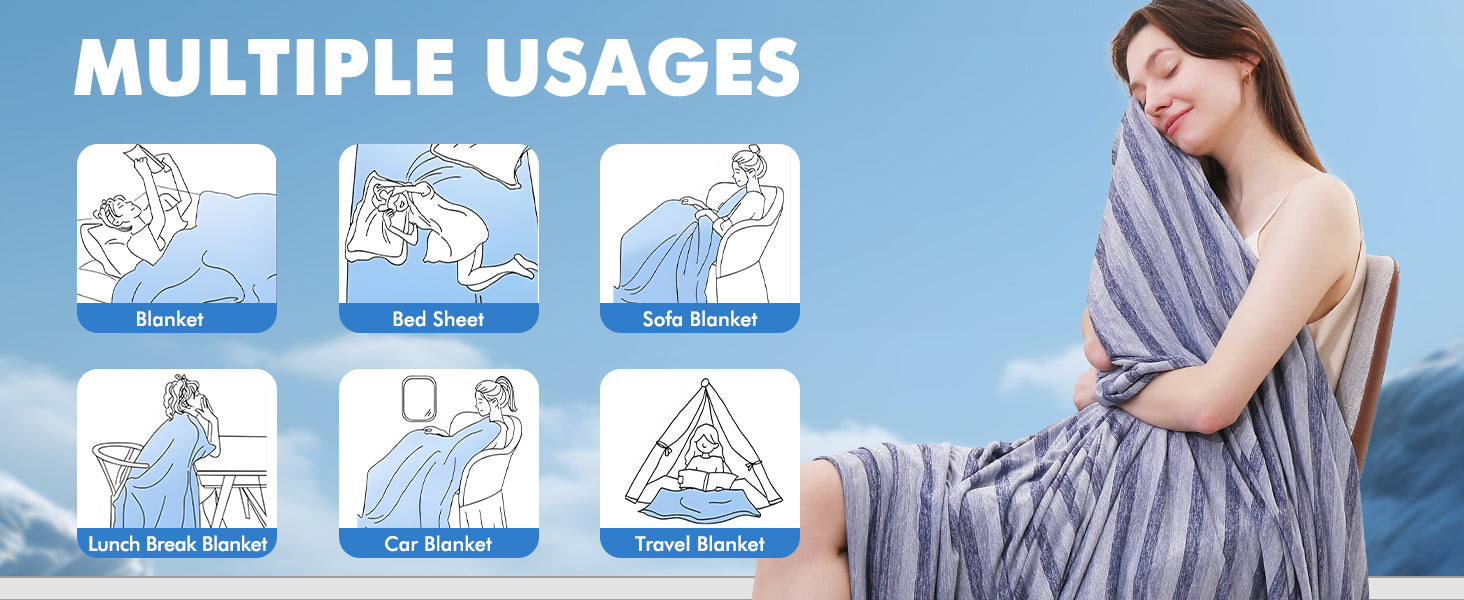 - 【Dual-Sided Cooling Fabric】The Striped Cooling Blanket features intelligent dual-surface engineering: Side A (Striped Surface): 100% Arc-Chill Cooling Polyester,Side B (Solid Surface): 100% Arc-Chill Cooling Nylon with mint-inspired cooling sensation. This cooling summer blanket will help you achieve a more restful sleep by effectively regulating your body temperature.