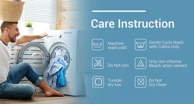 Bitte im sanften Modus unter 30℃/86℉ waschen. Nicht bleichen/bügeln. Nicht chemisch reinigen. Nicht im Trockner trocknen. Bitte im Schatten aufhängen.