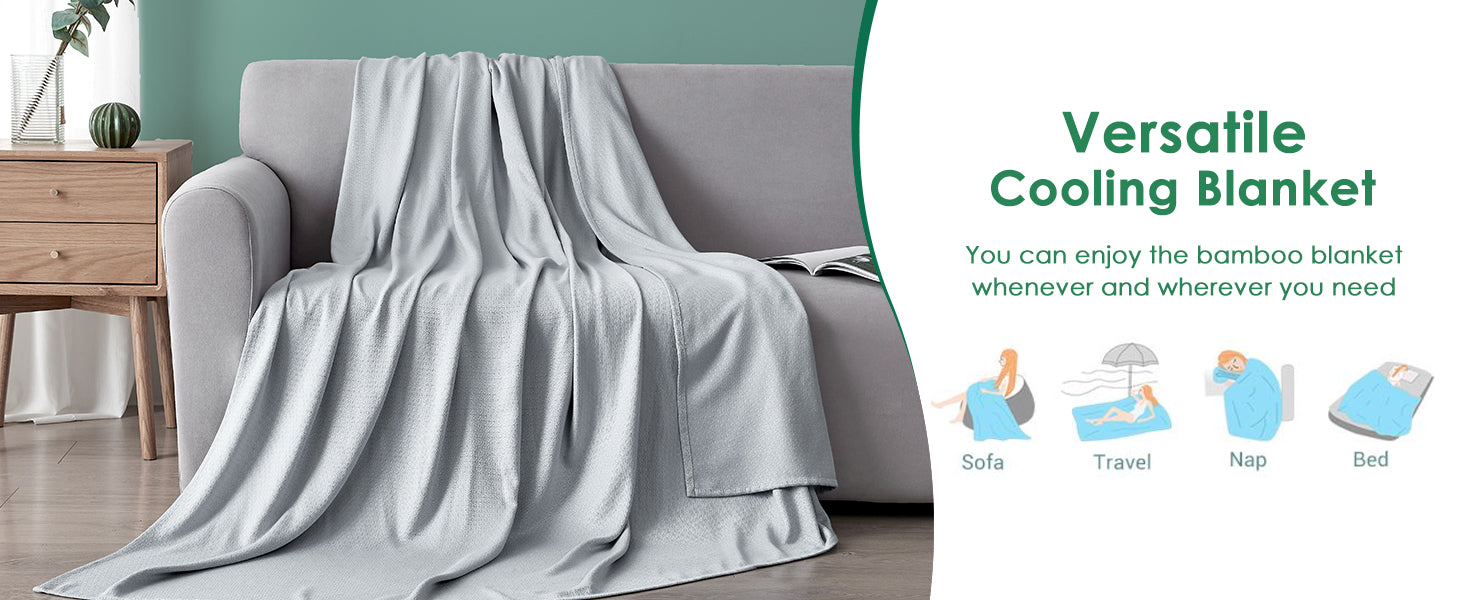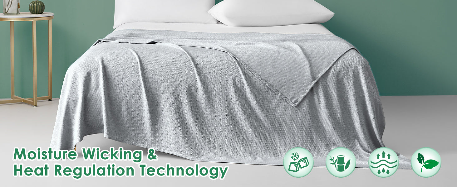 Utiliza la tecnología especial Arc-Chill para crear fibras de enfriamiento Q-max 0.34 a partir de 100% bambú. La manta de verano está impregnada con un aditivo de menta refrescante, que asegura que la manta refrescante pueda absorber mejor el calor corporal. También podrían mantenerte fresco en las noches de verano húmedas, brindándote un sueño reparador y mejorando la calidad de tu sueño.