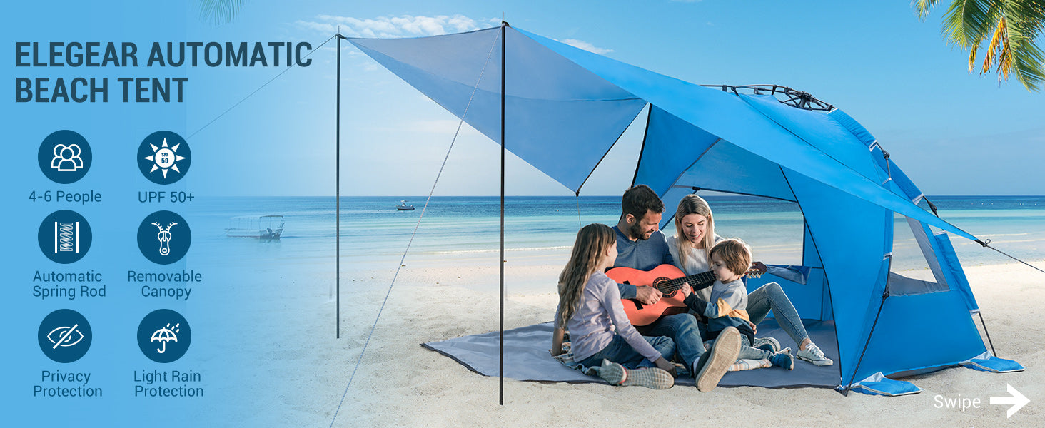 Elegear 4-6 Person Pop-Up Beach Tent with 360° Canopy, UPF 50+ Protection
