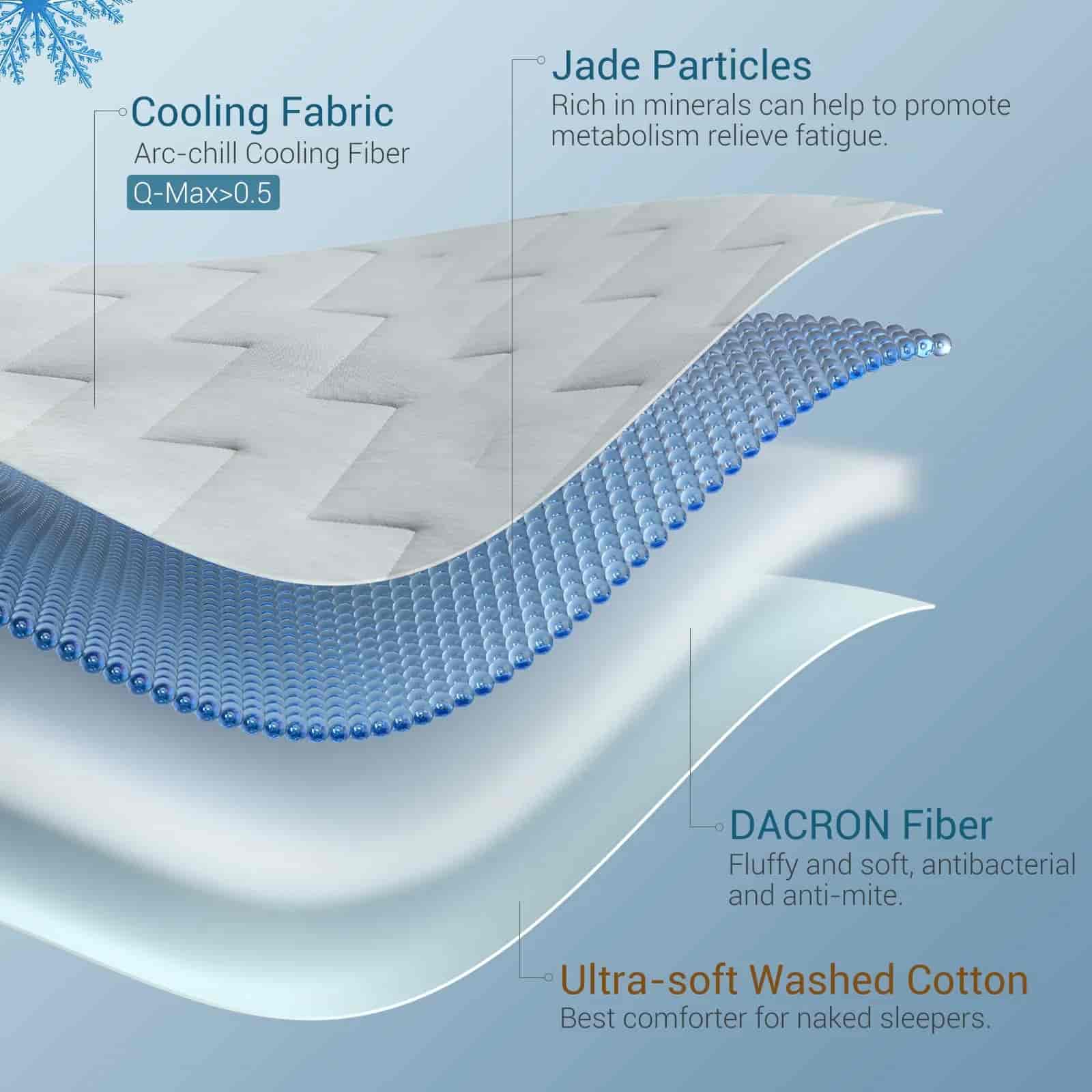 - Dacron Fiber : La structure aérienne à trois couches maintient la couverture froide moelleuse sans s'effondrer, garantissant une sensation douce et confortable peu importe la position dans laquelle vous dormez.