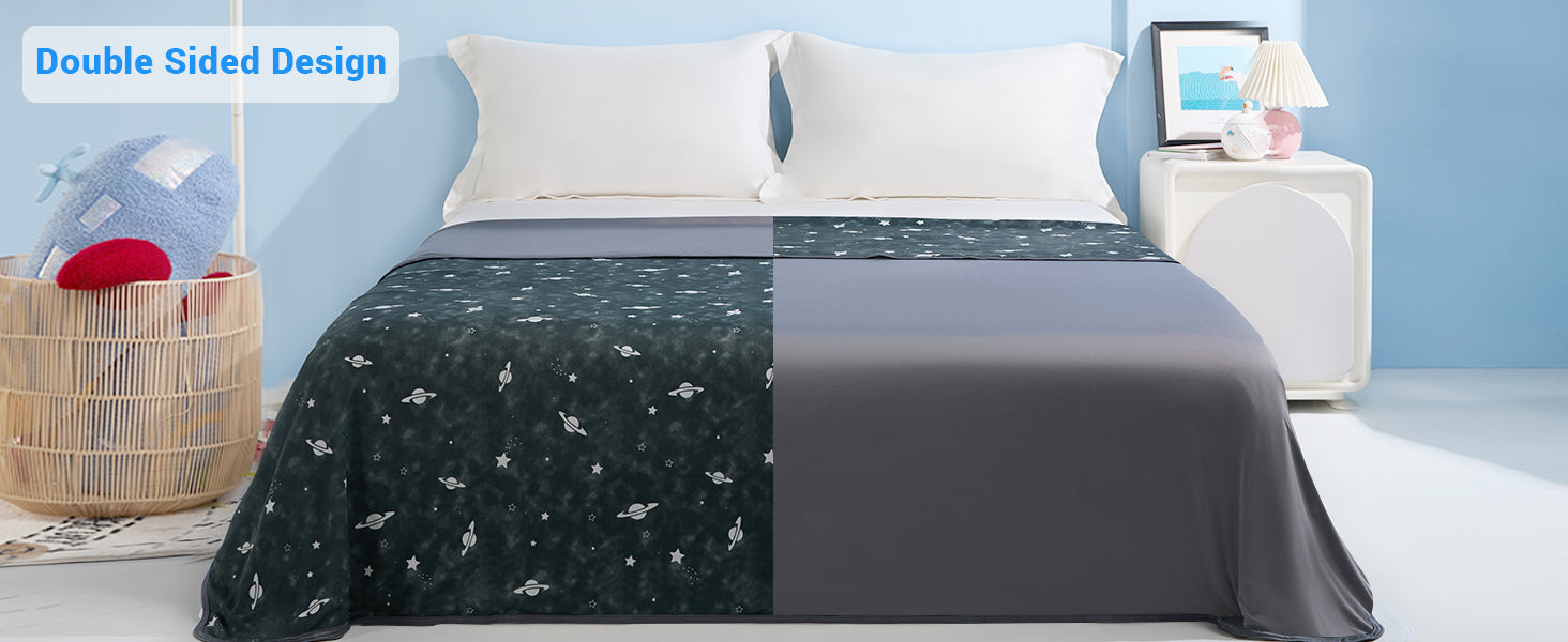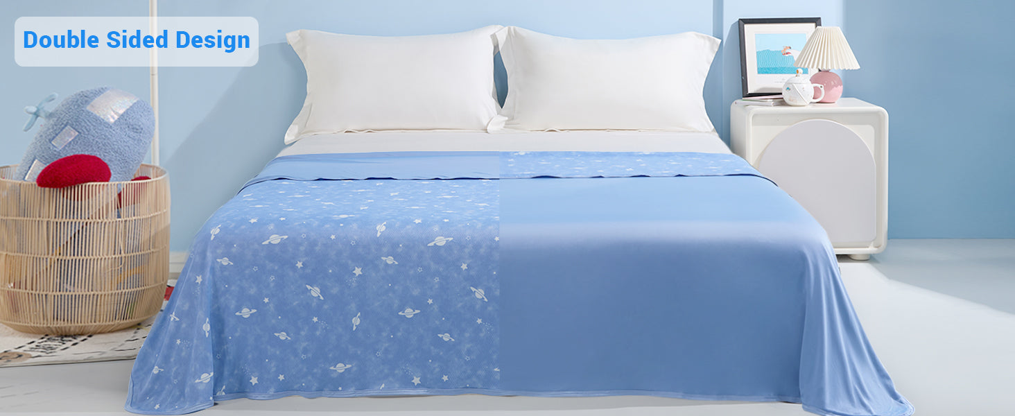 Glow-in-the-Dark Cooling Blanket For Kids– Q-Max > 0.5, Double-Sided Color Blue