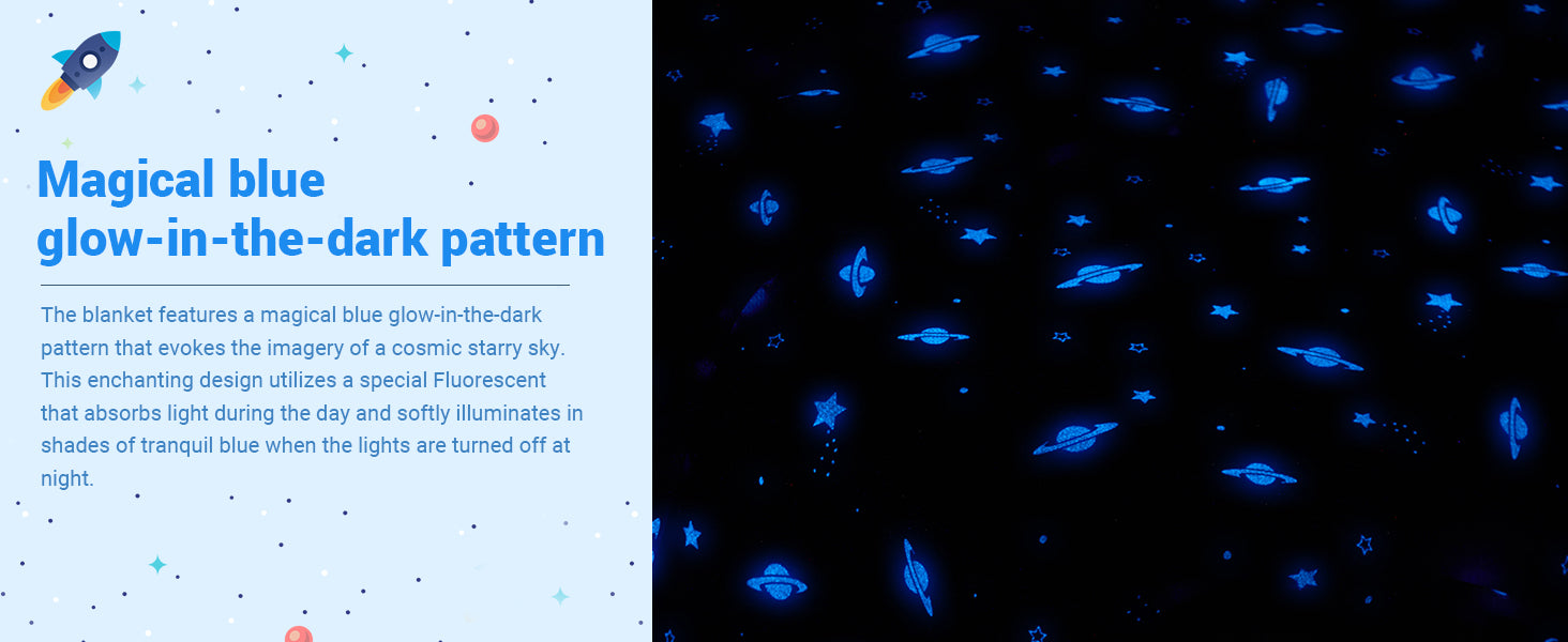- 【Glow-in-the-dark Cooling Blanket】- The night-glow summer blanket emits a soft blue light in the darkness, transforming children's rooms into a magical wonderland. Not only does it maintain a cool temperature, but it also brings delightful childhood shadows, adding a touch of fun and comfort to their sleep. May this adorable blanket accompany children through every wonderful night!