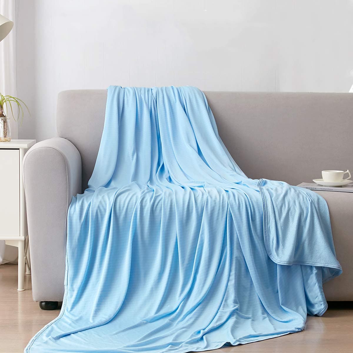 ULTRA COOLING BLANKETS - Are made of Japanese Arc-chill Cool-To-Touch Technology fabric, amazingly absorb your body heat. Specially made with 75% mica nylon and 25% PE on the top side,The injected mica has excellent heat exchange. The other side is made of 100% bamboo. All blankets are securely stitched, including corners and seams. Even after numerous machine washes, it will not fall off, shrink or fade.