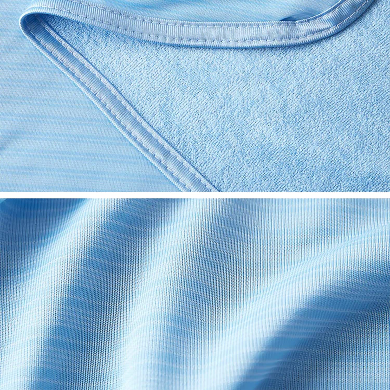 कपड़े का एक पक्ष 75% नायलॉन और 25% पॉलिएस्टर से बना है, जो पसीने को अवशोषित करके शरीर को ठंडा रखने में मदद करता है।