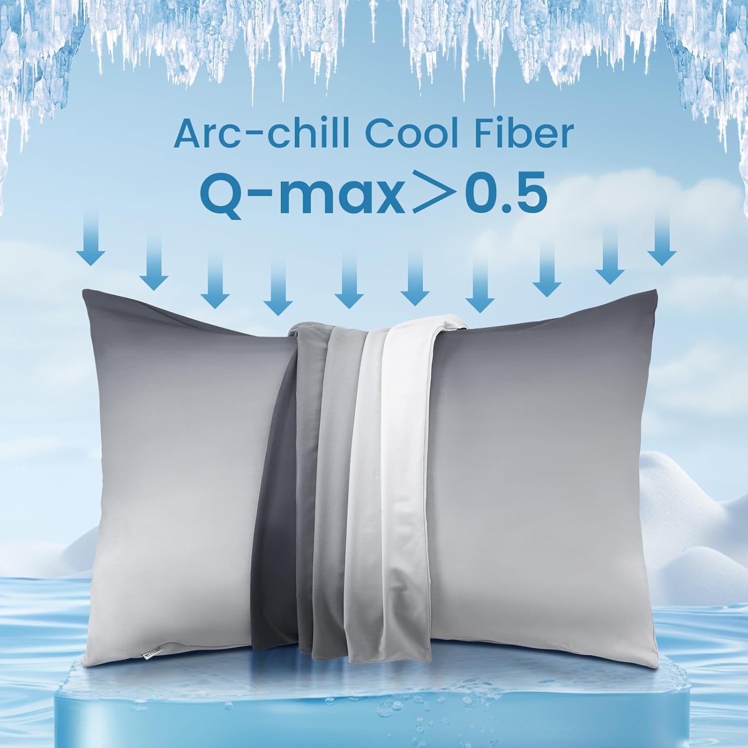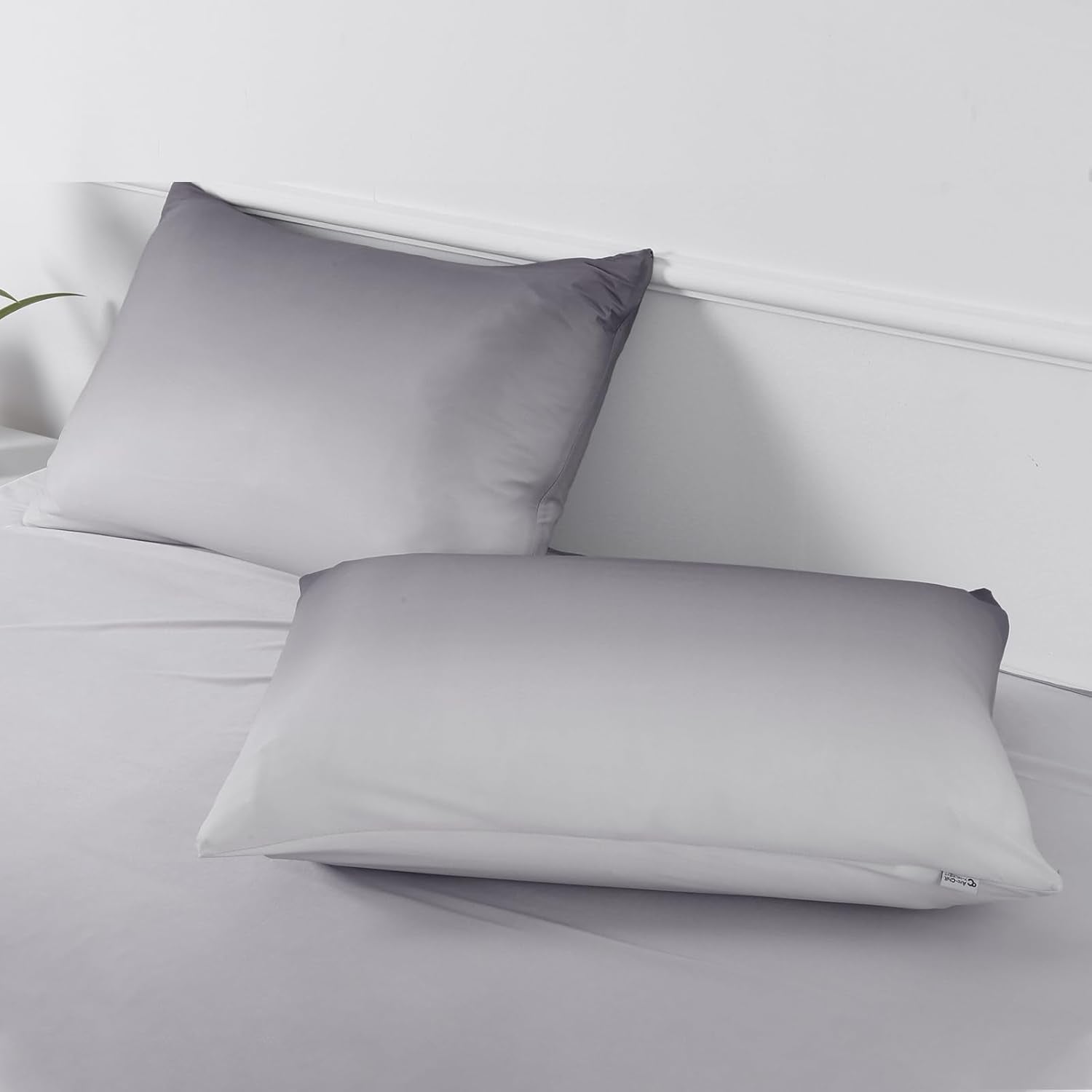 2 Pack Gray Cooling Pillowcases – Breathable, Soft, Skin & Hair Protecting