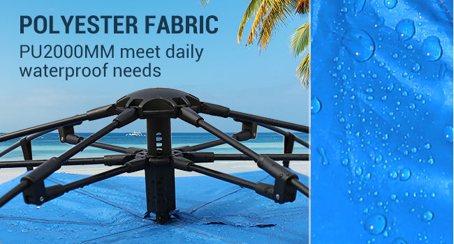 UPF 50+ & Waterproof: Made of 190T silver-coated polyester with PU2000 waterproofing, reducing interior temperature by up to 9℉ for cool comfort.