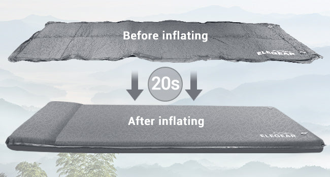- 🌟Upgraded Air Valve for Camping Pad: The valve on the Elegear self-inflating sleeping pad has undergone enhancement. Open the first layer of the two valves while maintaining the seal on the second layer. In this setting, air can only be expelled and is prevented from entering, facilitating a more efficient air expulsion process. The improved camping sleeping pad is now more convenient to store, leading to a reduced volume compared to its previous version.