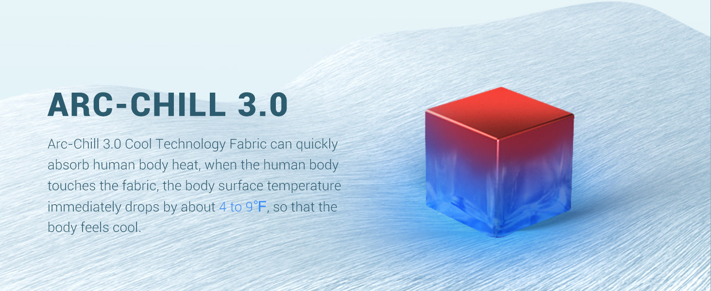 Нейлон и Arc-chill cool silk fiber обеспечивают исключительно мягкое ощущение. Свойства отведения влаги и терморегуляции гарантируют максимальный комфорт.